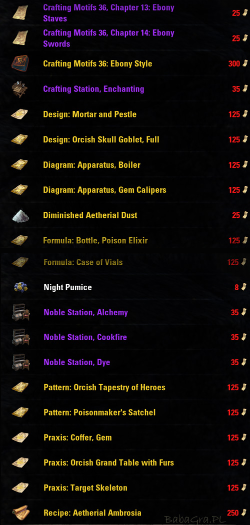 W przypadku jednak, jeśli zdecydujecie się wykonać zamówiony przedmiot, to za ich ukończenie otrzymacie Writ Vouchery. Można wymienić u NPC Rolis Hlaalu, Mastercraft Mediator, na bardzo interesujące nagrody takie jak na przykład stoły rzemieślnicze do domów zarówno te zwykłe, jak i te na których wytwarza się określone sety (attunable), szkielet do ćwiczenia dps (Animus Stone), nowe motif (Ebony) oraz przepisy na meble Legendary, których zdjęcia znajdziecie tutaj.