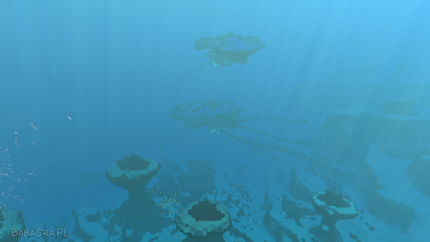 Studio Unknown Worlds odręcznie stworzyło cały świat, jaki możemy zwiedzać – a jest tego naprawdę sporo. Przy odpowiednim sprzęcie możemy nurkować na głębokość ponad 3000 metrów! Dodajcie do tego zmieniające się co kilkadziesiąt metrów biomy, mnóstwo podwodnych jaskiń oraz tonę porozrzucanego złomu z Aurory, z czego do części elementów możemy wejść i zwiedzać. Naprawdę wspaniała zabawa w czterech dostępnych trybach: przetrwanie, swobodny (bez głodu i pragnienia), ekstremalnym (jedno życie) i kreatywnym, gdzie wyłączone zostały wszystkie ograniczenia.