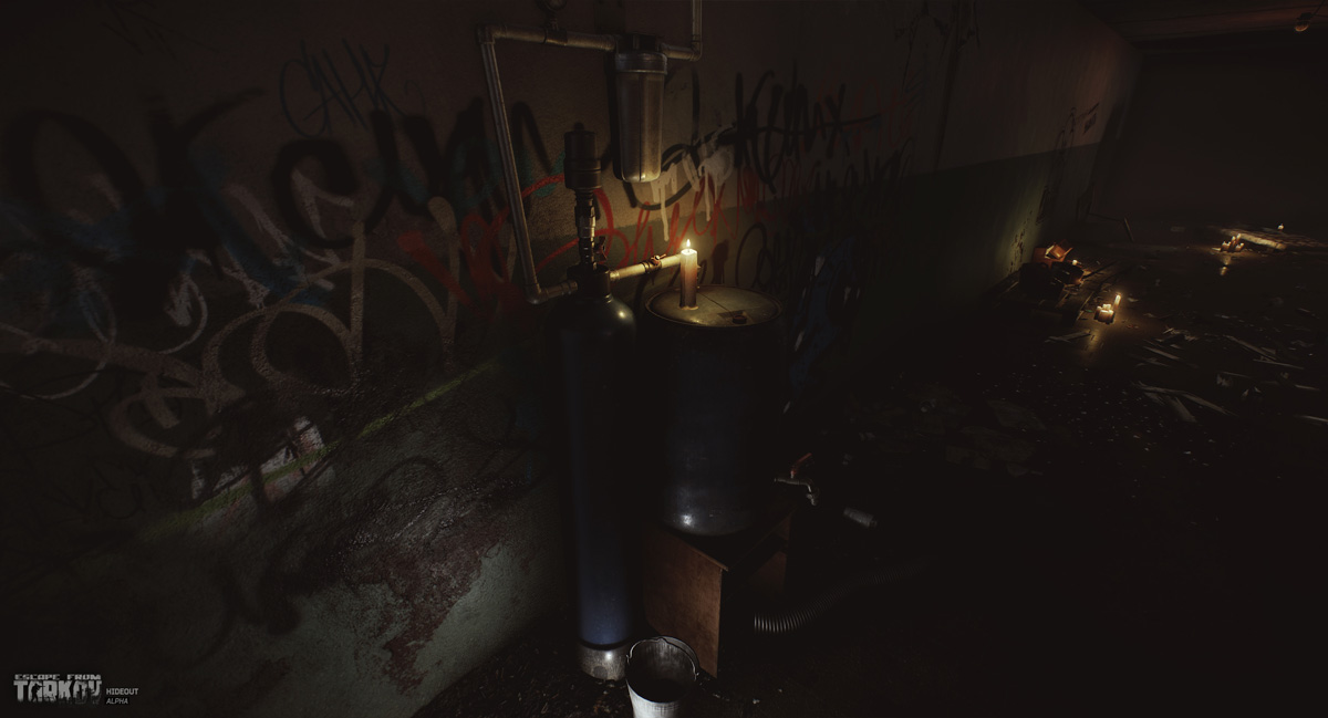 Gracz zacznie budować swoją Kryjówkę od podstaw. Zaczynie od znalezienia opuszczonego i zagraconego schronu przeciwlotniczego. Ulepszanie kryjówki odbywać się będzie poprzez tworzenie nowych i ulepszanie już stworzonych modułów. Na starcie beta testów, do dyspozycji graczy oddanych zostanie 13 modułów, takich jak generator prądu, system zbierania deszczówki, wentylacja, placówka medyczna, placówka zwiadowcza, system ogrzewania, łazienka i inne. Dzięki temu użytkownik będzie mógł ulepszać swoją postać, poprawiając jej stan zdrowia, nawodnienie i szybkość regeneracji energii. Kryjówka umożliwi także produkcję leków, amunicji i innych rzeczy, a dzięki ulepszaniu placówki zwiadowczej użytkownicy otrzymają możliwość współpracy z handlarzami, dostęp do trybu w którym mogą grać jako Scav i inne nie ujawnione jeszcze funkcje.