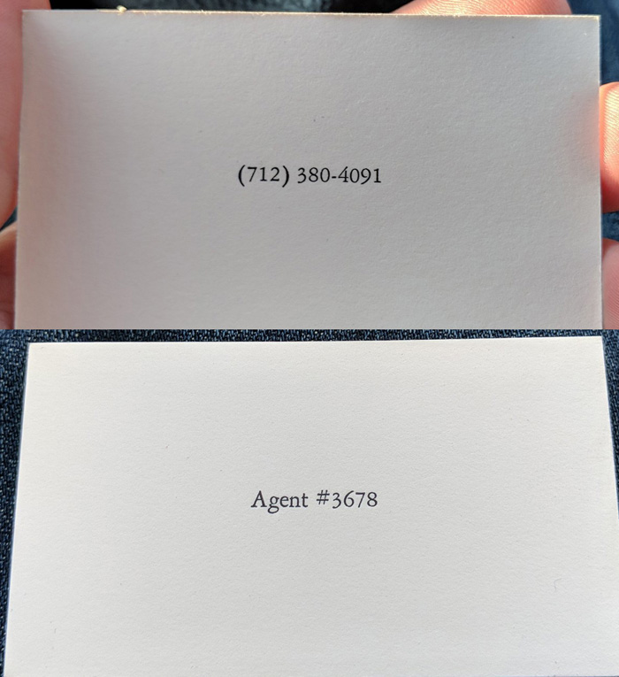 Okazuje się, że na miejscu pracuje tajemniczy agent rozdający wizytówki, na których widoczny jest numer telefonu.