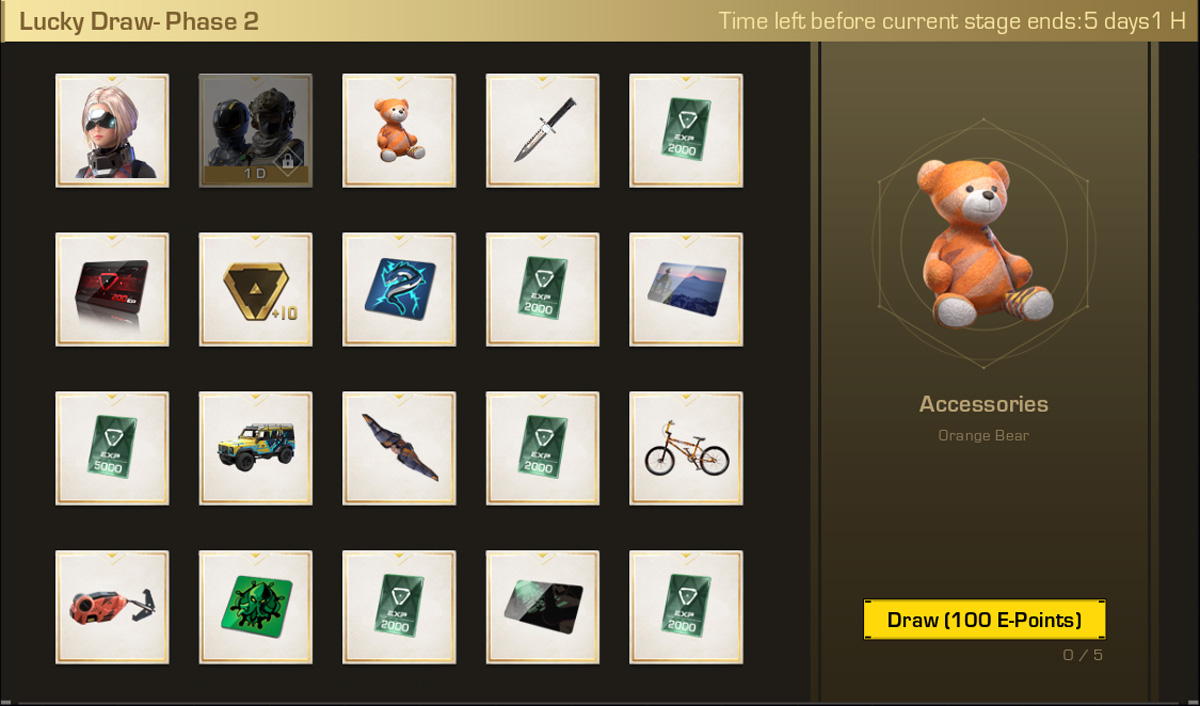 Prócz tego do gry powróciło wydarzenie Szczęśliwe Losowanie (Lucky Draw), które zaktualizowane zostało o nowe nagrody: skórki na pojazdy, portrety, ekrany ładowania i liczne przedmioty kosmetyczne. Dodatkowo posiadacze aktualnej przepustki sezonowej, mogą także zdobyć unikalny styl dla bohaterki Sylvia.